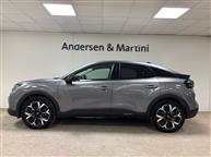 Citroën e-C4 er en elbil i mellemklassen. Citroën er kendt for specielt design og super komfort. Citroën C4 er ingen undtagelse. Bilen har en rækkevidde på op til omkring 350 km (ifølge WLTP), og bilen er ofte beskrevet som virkelig komfortabel. Samtidig er den veludstyret, og den har masser af franske charme med ”skæve” detaljer og anderledes løsninger. Har vi Citroën e-C4 på lager, kan du se dem nedenfor.. Se også videotest af Citroën e-C4 her.