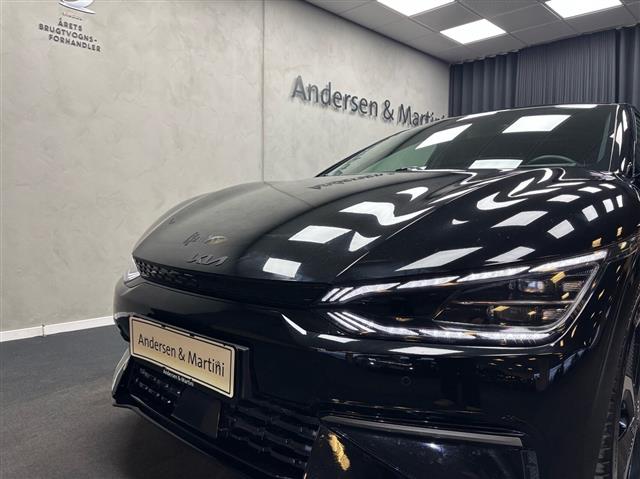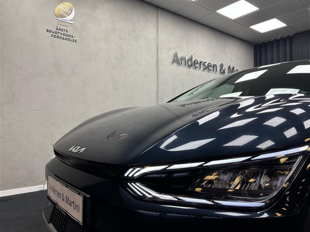 Kia EV6 er en elektrisk crossover i mellemklassen. Den imponerer med sin lange rækkevidde og høje udstyrsniveau og rimelige priser. EV6’eren er den første model i en række af Kia EV-modeller. EV6’eren havde premiere i august 2021, og i februar 2022 blev den kåret til Årets Bil i Europa 2022, hvilket er et godt vidnesbyrd om, at der er tale om en både velkørende og velbygget bil. En ny Kia EV6 har en officiel rækkevidde fra 484 km (GT-Line/Long Range) til 528 km (Long Range med baghjulstræk). Tidligere modeller kan have en rækkevidde op til 394 km. Hos Andersen & Martini er vi autoriseret Kia-forhandler. Vi har både nye og brugte EV6’ere til salg. Se det aktuelle udvalg på lager nedenfor - og læs mere om bilen og se nybilspriser her. Se også videotest af Kia EV6 her.