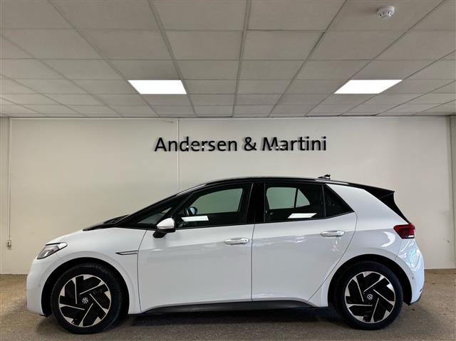 VW ID.3 er Volkswagens første dedikerede elbil. Det er en elbil i mellemklassen (i C-segmentet). Den kan godt kaldes en elektrisk Golf, selvom det er to forskellige biler. Den efterfulgte således e-Golf. ID.3 har været i produktion siden 2019 og blev kåret til Årets Bil i Danmark 2021. ID.3 har en rækkevidde på mellem 346-550 km. alt efter model. ID.3. Hos Andersen & Martini har vi ofte nyere brugte ID.3’er til salg. Se også videotest af VW ID.3 her.